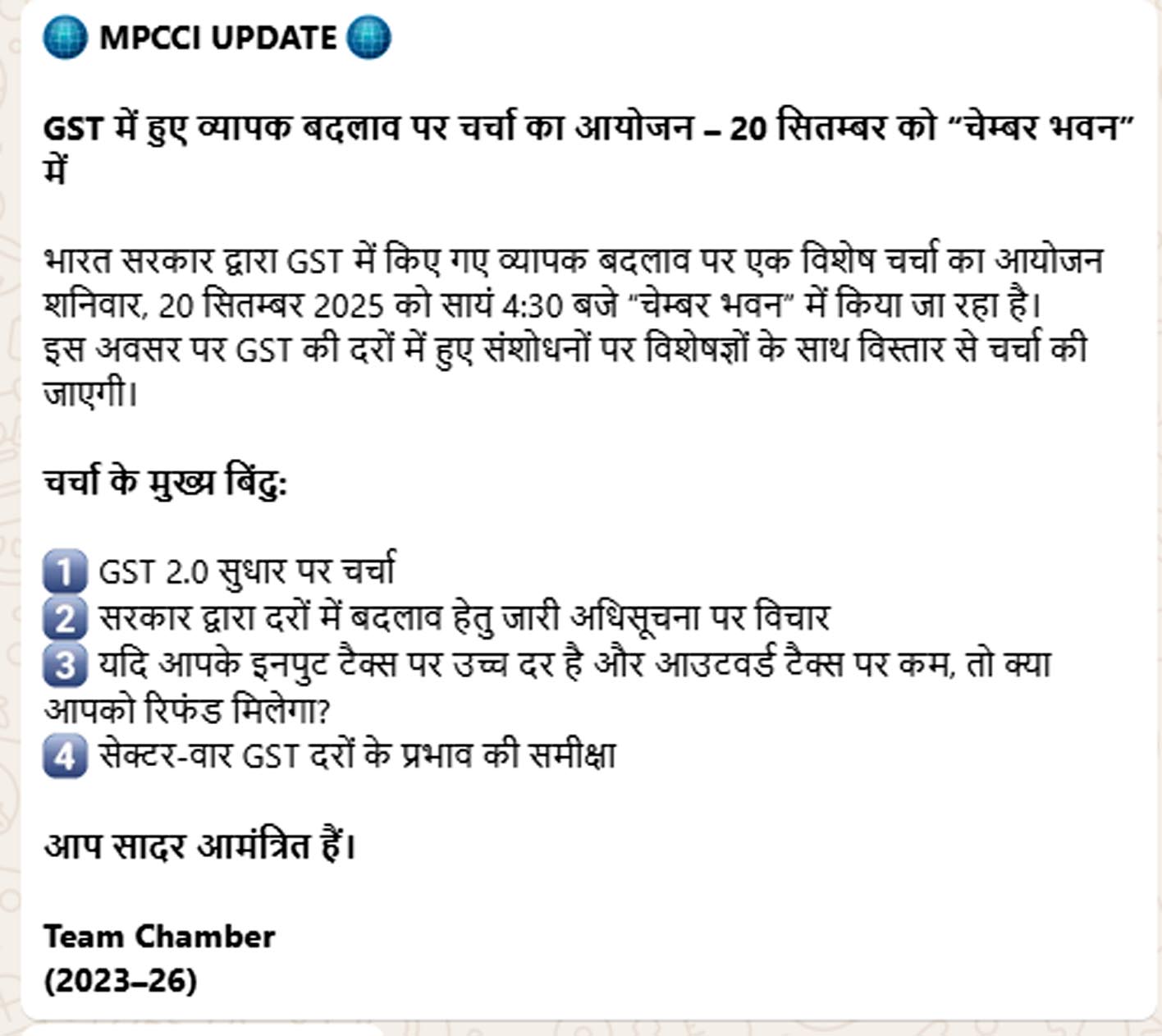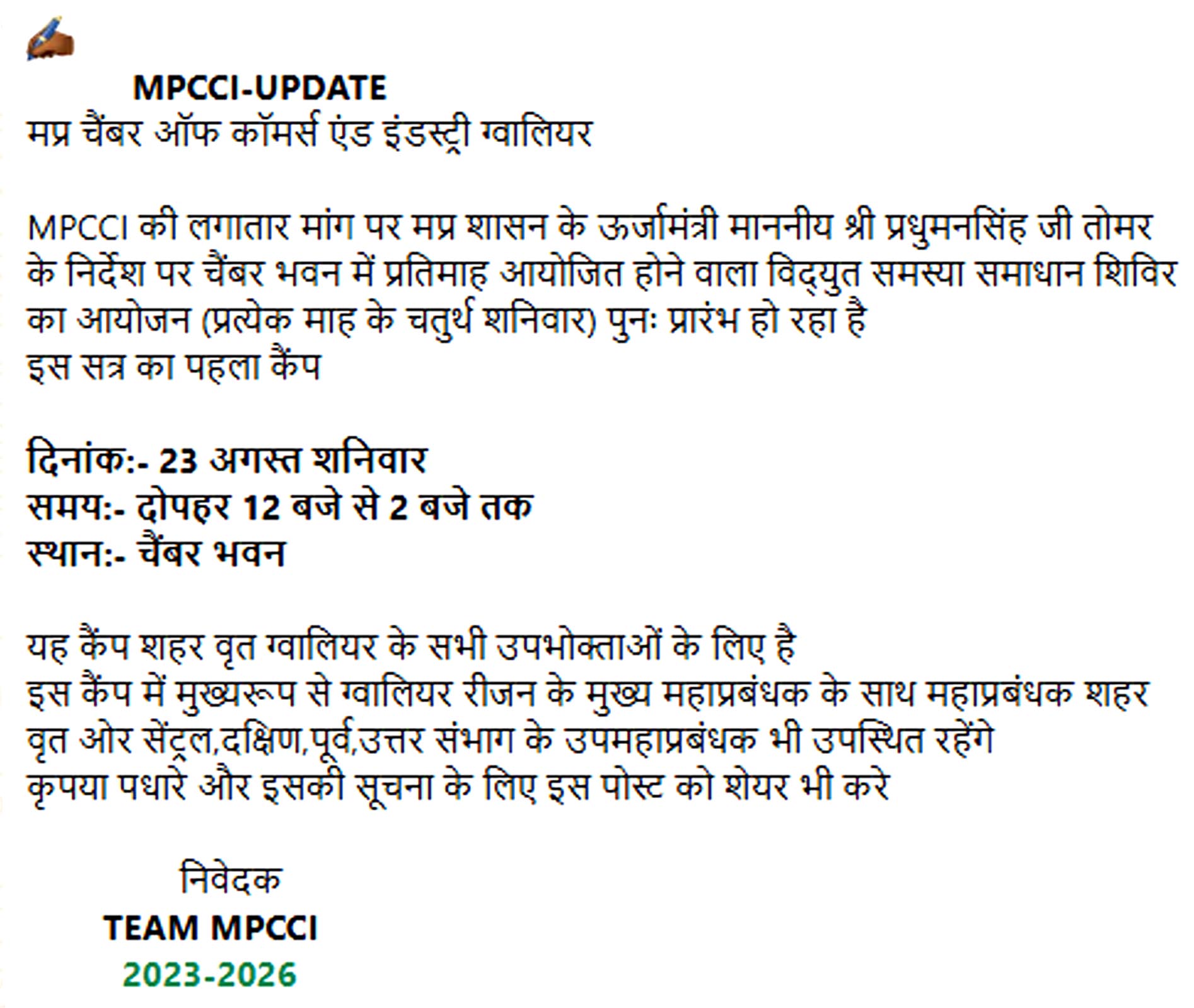 Email Us at: info@mpcci.in | pro@mpcci.in