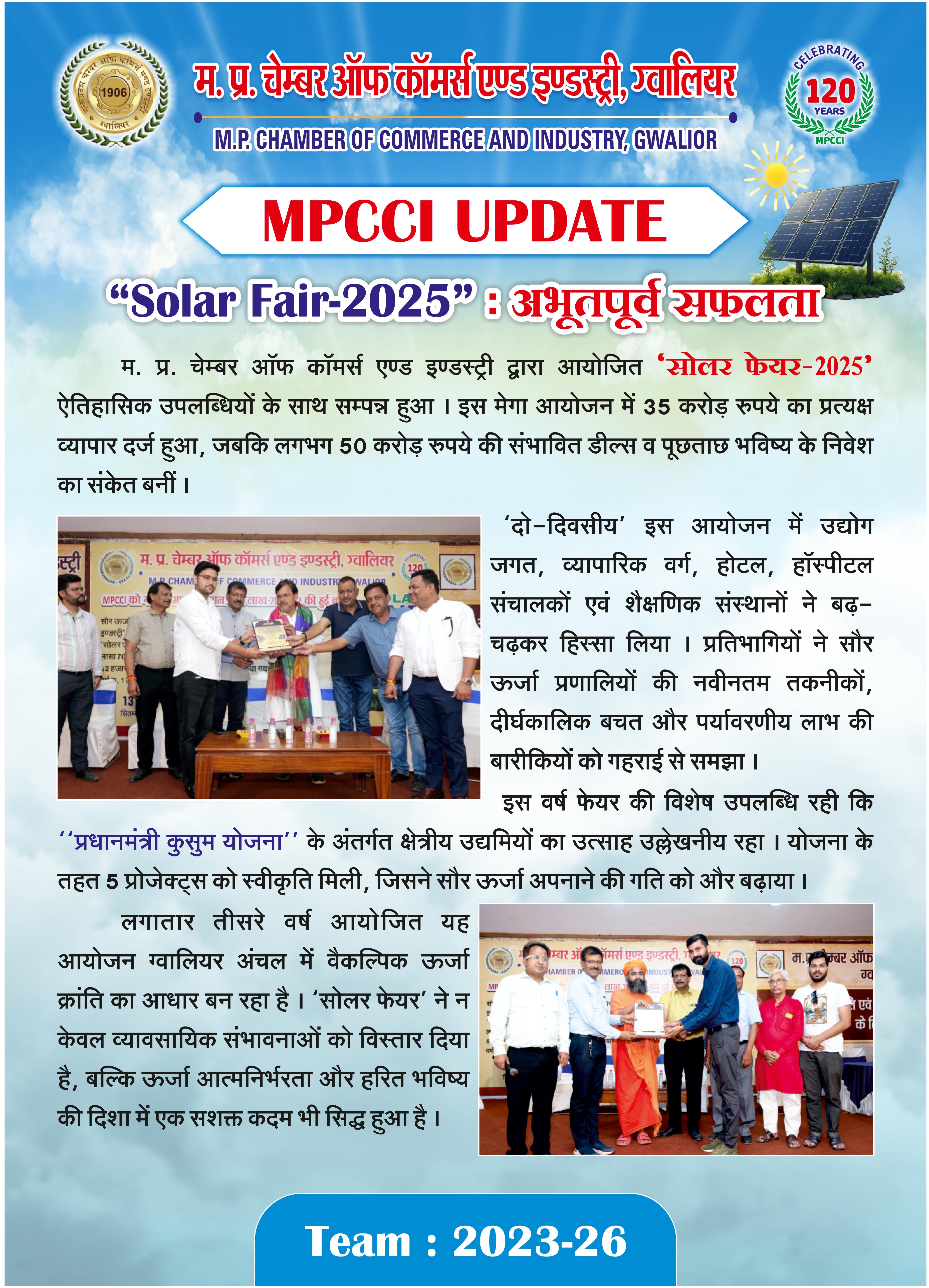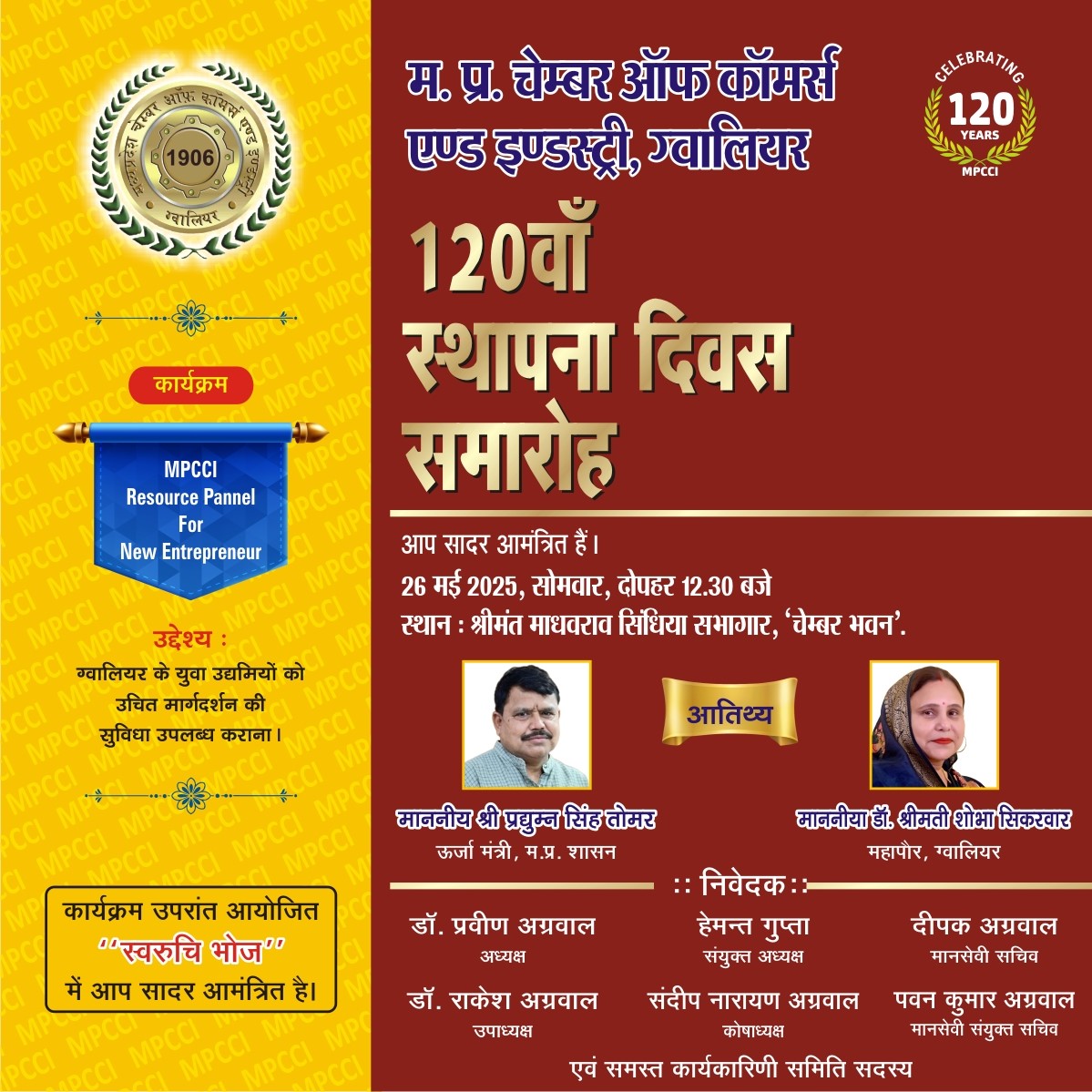 Established in 1906, MPCCI is the largest and oldest apex business organisation of Gwalior. Its history is closely interwoven with India's struggle for independence, its industrialization, and its emergence as one of the most rapidly growing global economies.