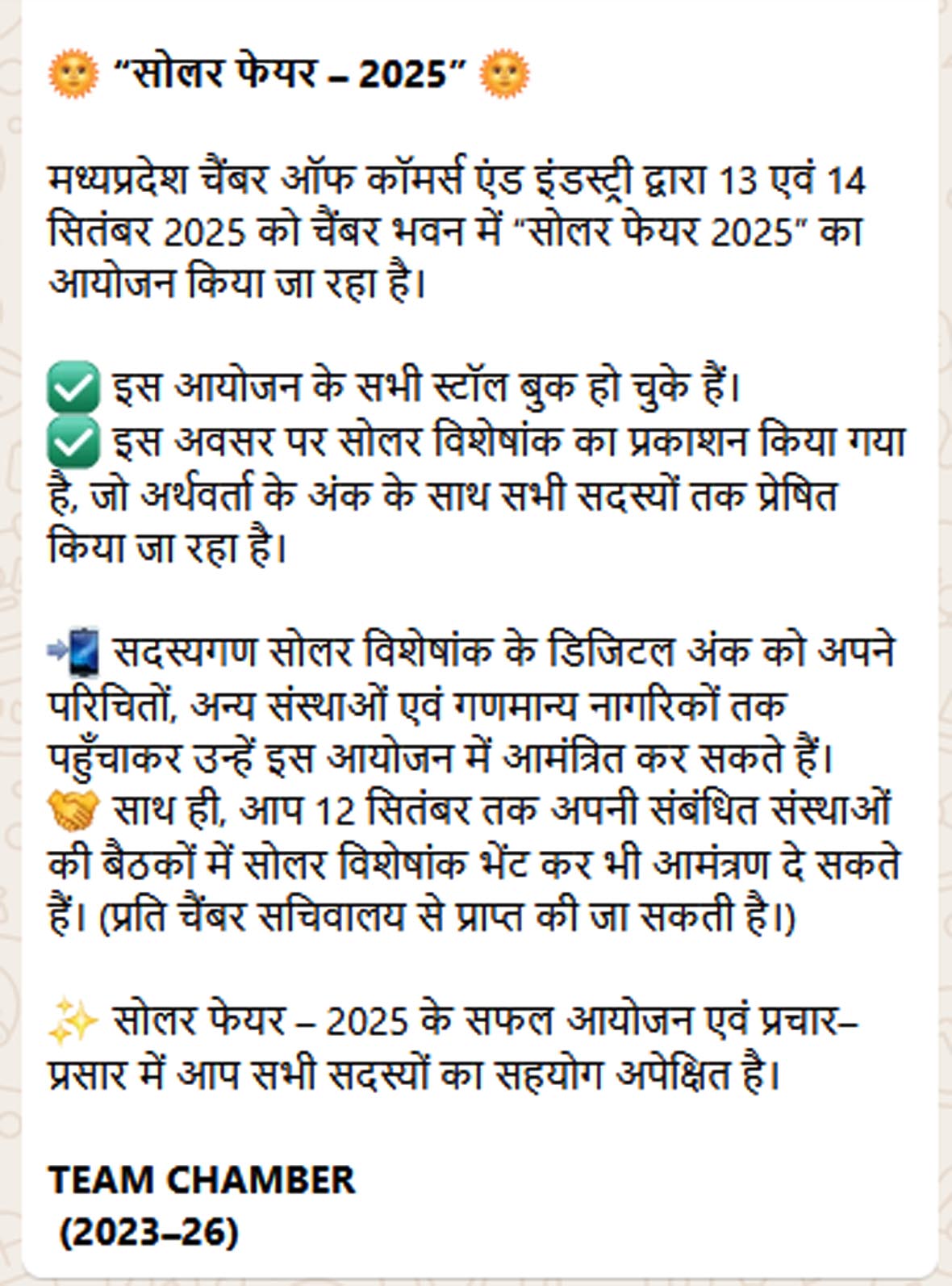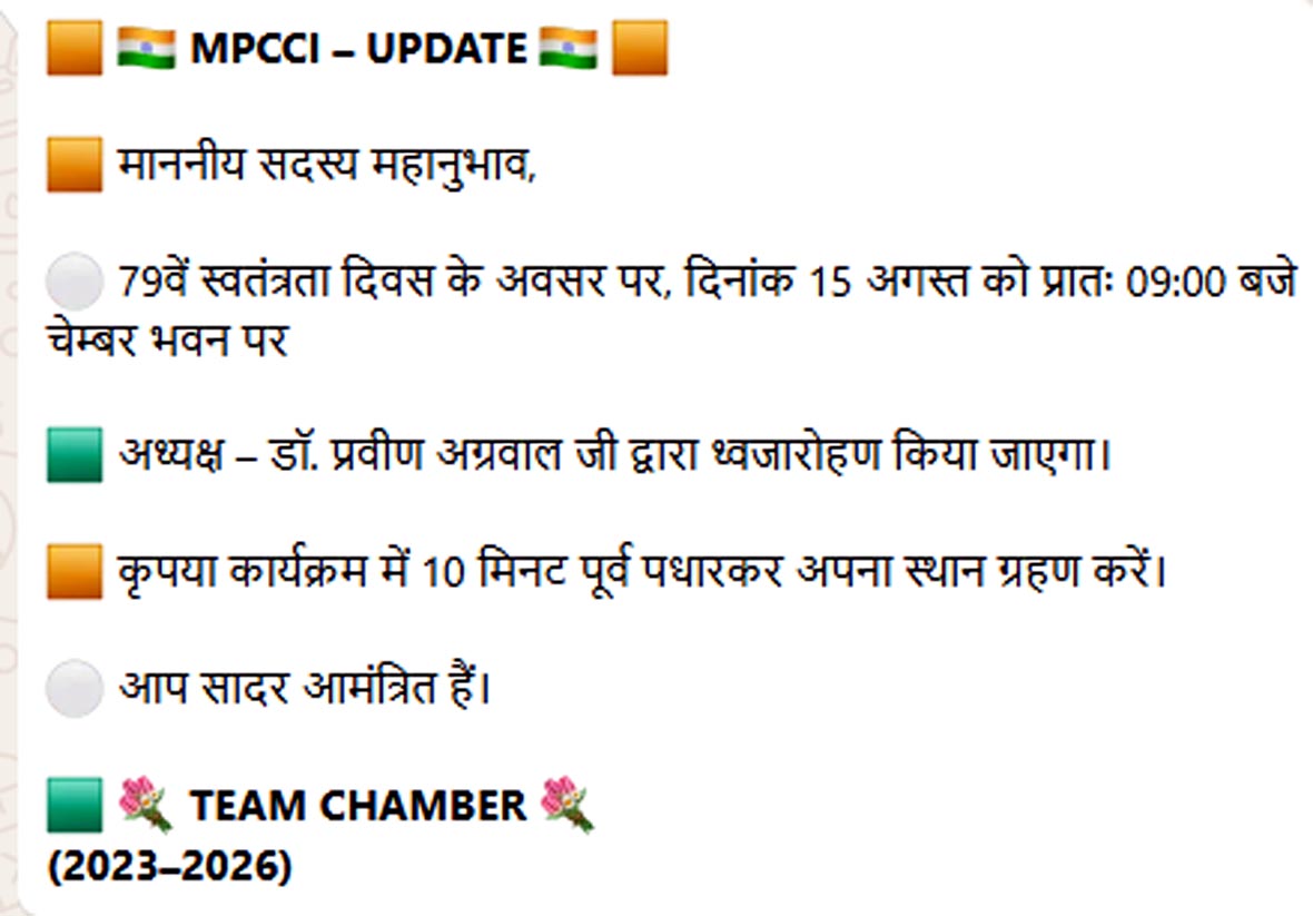 Email Us at: info@mpcci.in | pro@mpcci.in